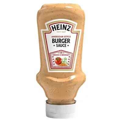 Perfekt für ein optimales Grillerlebnis: die Saucen-Spezialitäten von Heinz. Das vielfältige Angebot bietet für jeden Geschmack die richtige Sauce, ob zu Fleisch- oder Fischgerichten oder zu frischem Gemüse. Sie erhalten die Heinz Saucen-Spezialitäten in der 220 ml-Kopfstehflasche. Den unwiderstehlichen Geschmack der American Style Burger Sauce aus dem Hause Heinz erhalten Sie in der wiederverschließbaren 220 ml Flasche.
